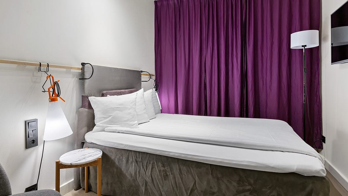 Det här rummet ligger på hotellets första våning utan fönster. Du får lite mindre dagsljus, men desto mörkare nätter till en billigare peng. Ekonomirummen är ett av våra tystaste rum. Rummet har en dubbelsäng, där 2 personer sover gott. Rummets storlek är ca 14 m²